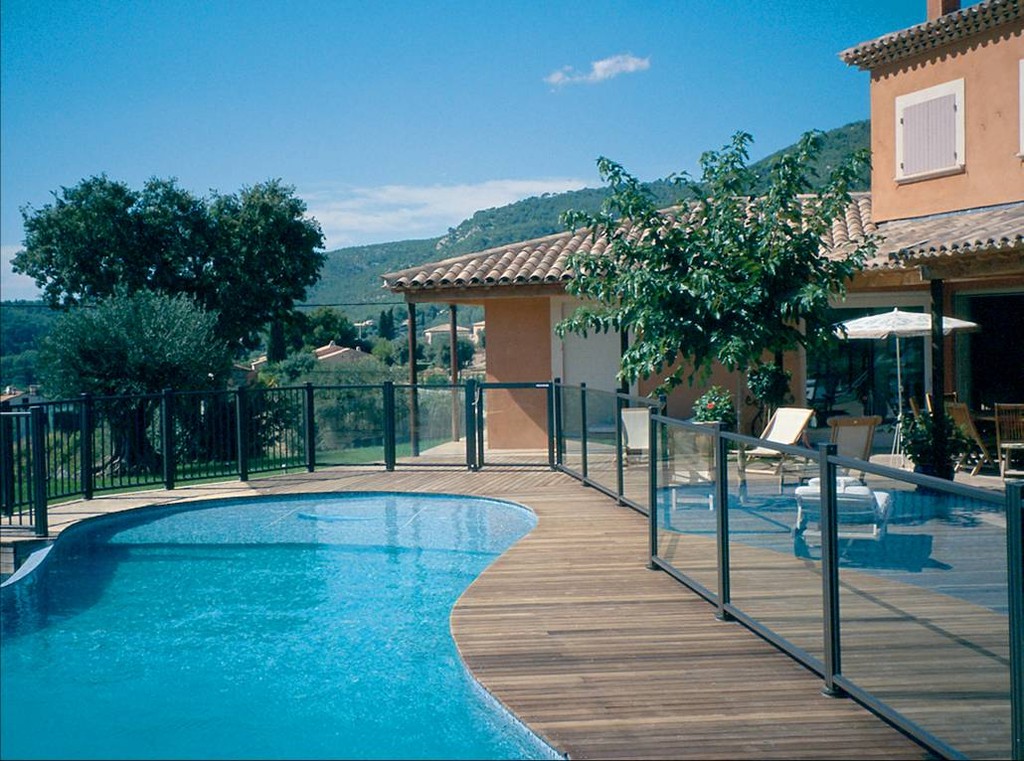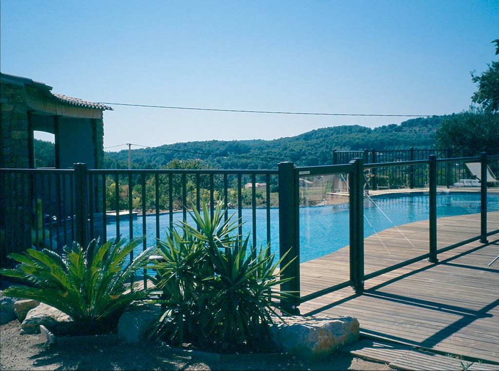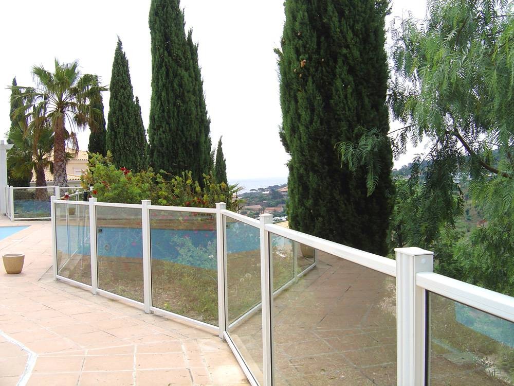 Las vallas de piscinas se pueden instalar con barrotes verticales o con vidrios laminados o pintados.