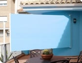Toldo Ely lateral preparado para su instalación con soportes a suelo o a pared.