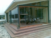 Cerramientos laterales y frontales de cortina de vidrio corredera.