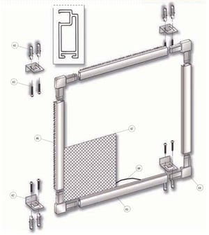 Cuando colocacmos la mosquitera en el hueco existente mediante clips son necesarios cuatro clips de sujección, ocho tornillos y ocho tacos de métrica pequeña.