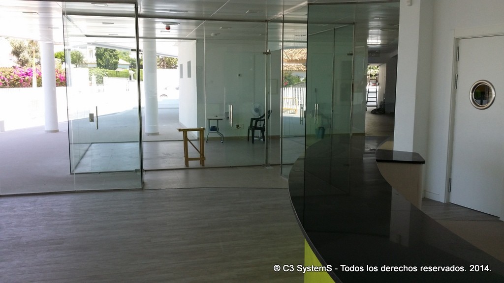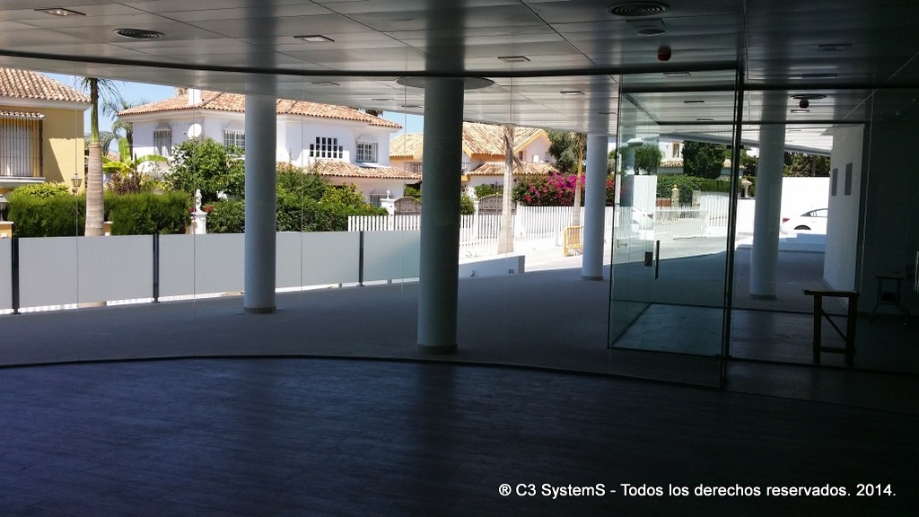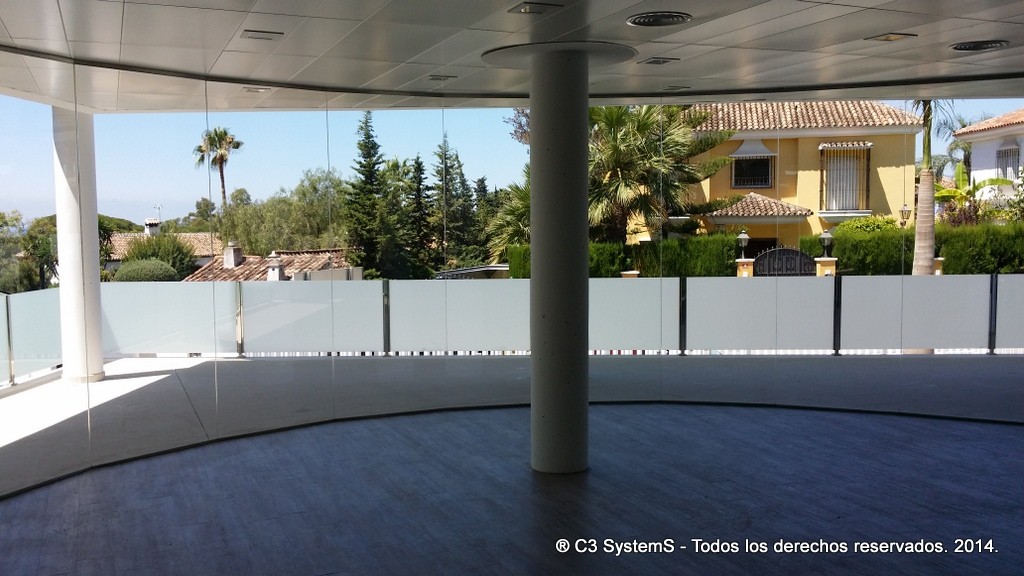 En consecuencia la facilidad de su instalación la hacen accesible a todo, bien sea mediante un sistema de clipaje superior e inferior, instalado primero los perfiles y posteriormente el vidrio o bien mediante una u superior y el mismo sistema de clipaje inferior, que permite incorporar el marco superior entre el falso techo o columnas que puedan existir