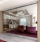 Los sistemas deslizantes Seeglass Lux pueden adaptarse perfectamente a los nuevos sistemas de separación de interiores de vidrio.